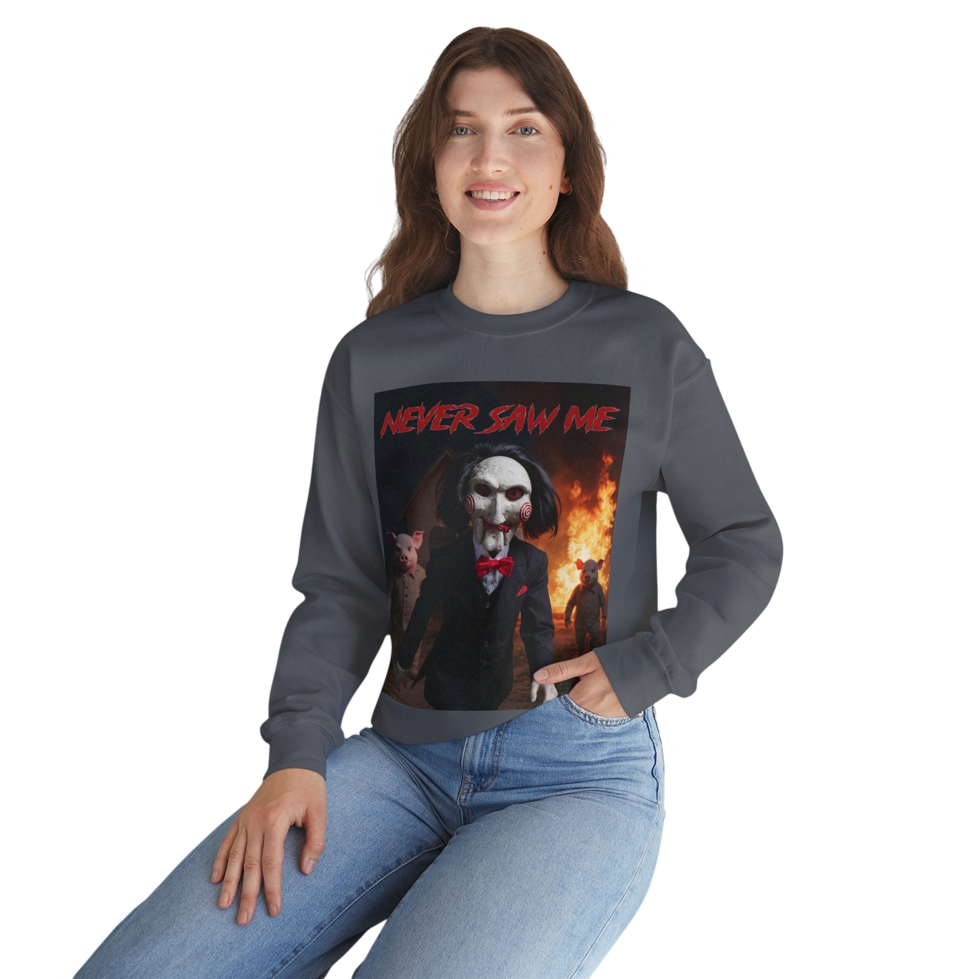 Introducing the perfect addition to your casual wardrobe: a Unisex Heavy Blend™ Crewneck Sweatshirt, designed for ultimate comfort and style. This fashionable sweatshirt features a fun, bold graphic that evokes a playful yet edgy vibe, great for any laid-back outing or cozy night in. Ideal for fans of quirky designs, this piece effortlessly complements various outfits, allowing for personalized expression. Perfect for relaxed get-togethers, costume parties, or even Halloween celebrations, it’s a must-have for anyone wanting to make a statement. Day or night, this sweatshirt brings comfort and flair, making it a staple for your everyday collection.